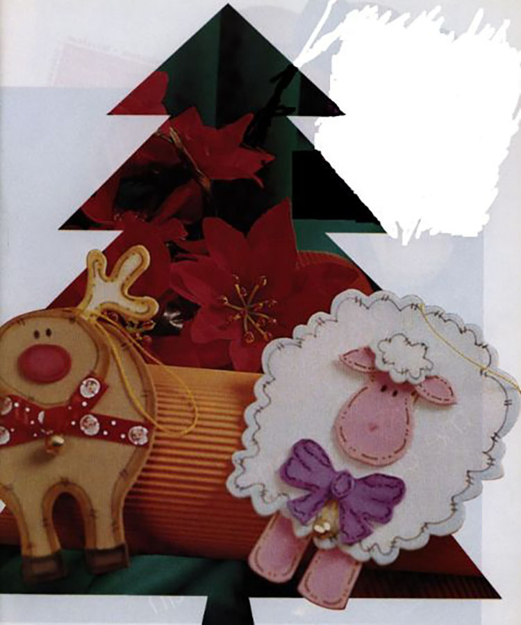 6. Pega la nariz del reno a la cara y los cuernos por detras, una vez terminada unela al cuerpo y pega las pezuñas. Por ultimo forma y pega un moño con un cascabel en el cuello.