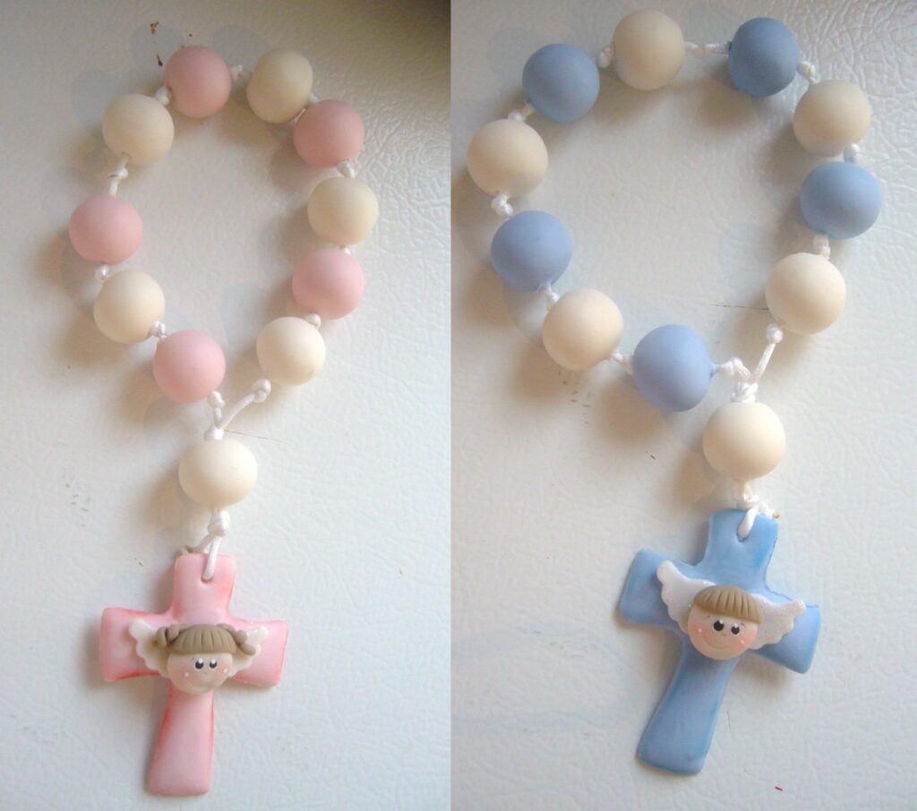 Los decenarios de porcelana fría (también conocidos como denario o decenio) o mini rosarios, son ideales para souvenirs de bautizo o primera comúnion.