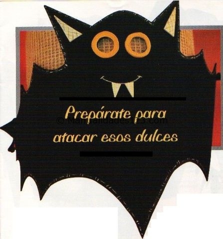 Hoy tenemos una encantadora manualidad, se trata de un murcielago pronto para atrapar dulcen y te acompañara el dia de halloween.
