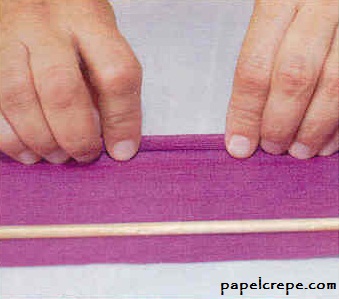 Enrolla a lo largo y por la orilla del papel los palos, girándolos hasta la mitad de ambos lados.