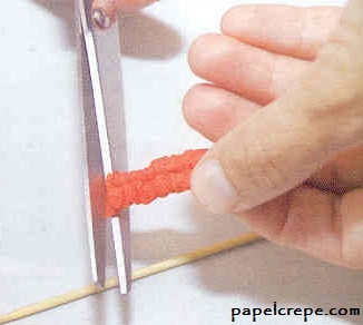 Para hacer los churros pequeños o mini churros recorta el papel crepé en cuadros pequeños procurando que sean más pequeños que la medida de tu varilla. Puedes utilizar palillos de brocheta.